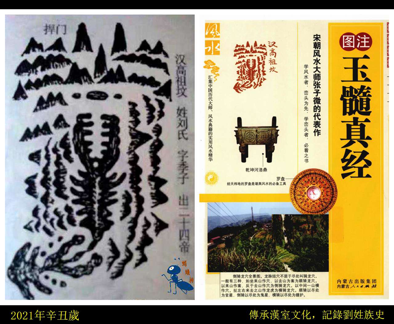 宋朝风水大師張子微著的《玉髓經》記載了漢高祖墳的手绘圖,並注“姓劉氏,字季子,出二十四帝”。