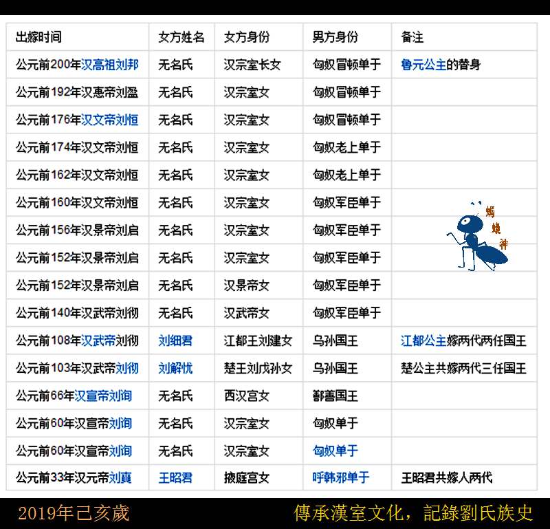 西汉第一位远嫁乌孙的公主——刘细君。与汉相比,乌孙是个相当落后的民族。细君生长在文明程度较高的中原,又是汉宗室江都王刘建之女(76汉文帝刘恒→77汉景帝刘启→78江都易王刘非→79江都王刘建→80刘细君),自幼就受到良好的教育和文化熏陶。她远别家人,来到乌孙,除了其他各种困难和痛苦,还必须要以坚强的意志和毅力去接受乌孙民族的习俗。这对于一个来自“礼仪之邦”的女子来说,是件十分不容易的事情。昆莫猎骄靡后曾使其孙岑陬娶细君为妻,细君不肯从命,上书汉朝天子,希冀能得到亲人的支持。汉天子的回答是:“从其国俗,吾欲与乌孙共灭胡。”细君无奈,为了汉帝征服匈奴的大业,她只得再次成为岑陬的妻子。细君最后老死乌孙,终生不曾归汉。后世流传的,她的悲愁歌便反映了她当时的心情。