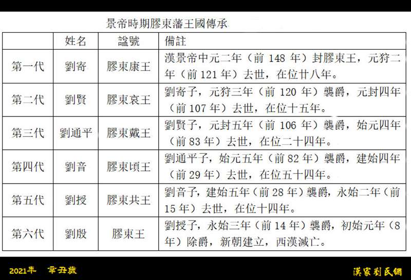 胶东王刘贤在位十五年去世,谥号为胶东哀王。他儿子胶东戴王刘通平继位,二十四年去世。刘通平儿子胶东顷王刘音继位,五十四年去世。刘音儿子胶东共王刘授继位,十四年去世。刘授儿子刘殷继位胶东王,到王莽时被废。