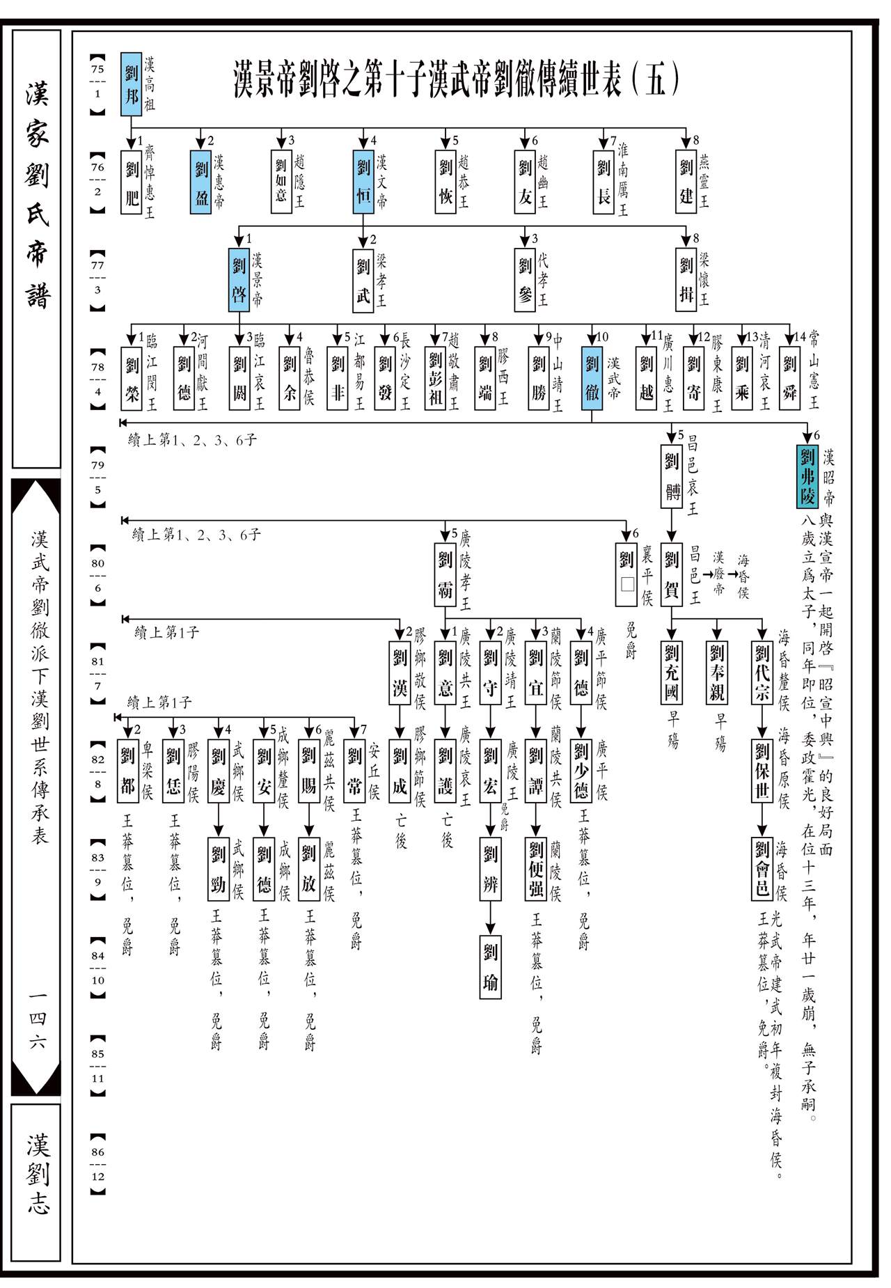 汉武帝刘彻传下后裔族谱详细资料: