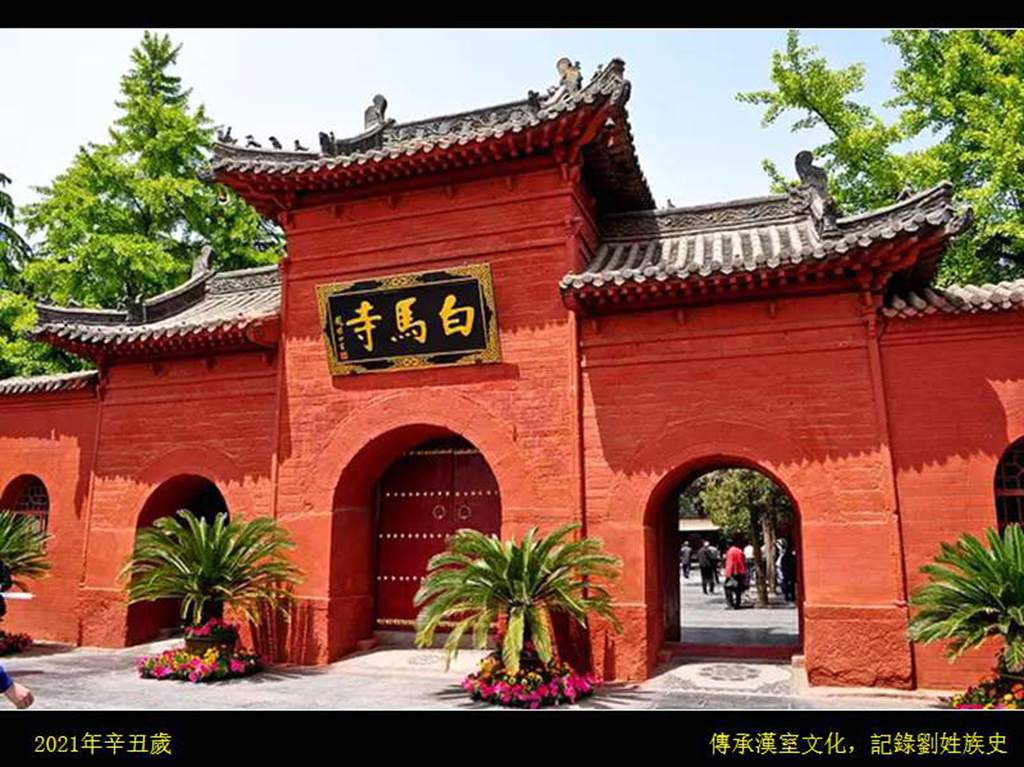 第二天朝会时,他向群臣详述梦中所见,大多数人都不知其由。后来他有个博学的大臣说那可能是西域的佛陀,汉明帝刘庄听说西域有神,其名曰佛陀,于是派使者赴天竺求得其书及沙门(沙音娑,亦作娑门,亦译作桑门),并于洛阳(当时称雒阳)建立中国第一座佛教庙宇——白马寺。