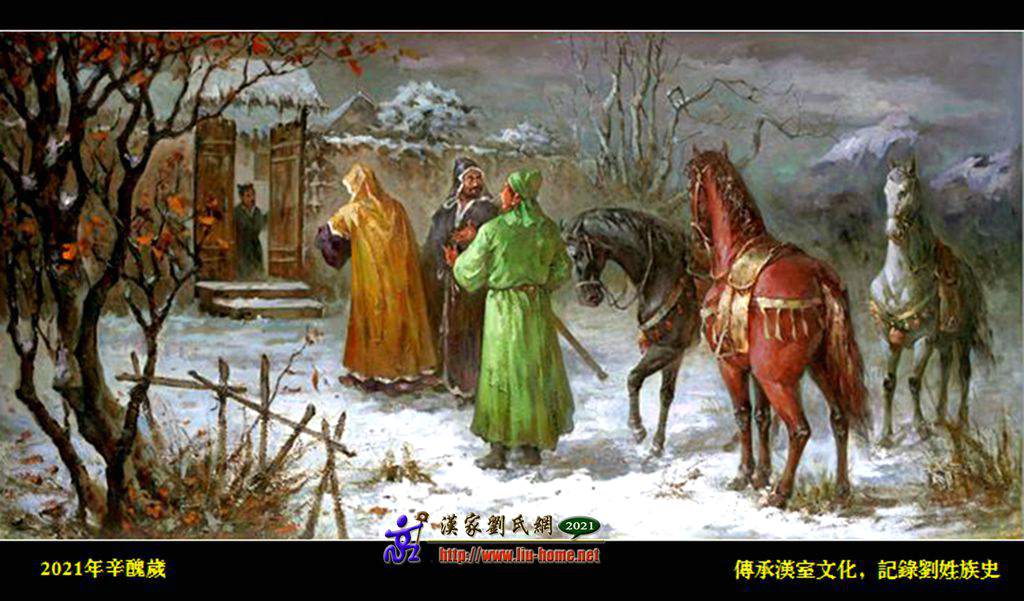 过了几天,刘备和关羽、张飞冒着大雪又来到诸葛亮的家。刘备看见一个青年正在读书,急忙过去行礼。可那个青年是诸葛亮的弟弟。他告诉刘备,哥哥被朋友邀走了。刘备非常失望,只好留下一封信,说渴望得到诸葛亮的帮助,平定天下。