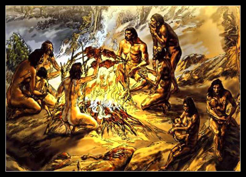 最早的原始人,还不知道利用火,东西都是生吃的,生吃植物果实还不算,就是打来的野兽,也是生吞活剥,连毛带血的吃了。后来,才发明了用火(在周口店的北京人遗址上,已发现用火的痕迹,说明那时候已经知道利用火)。