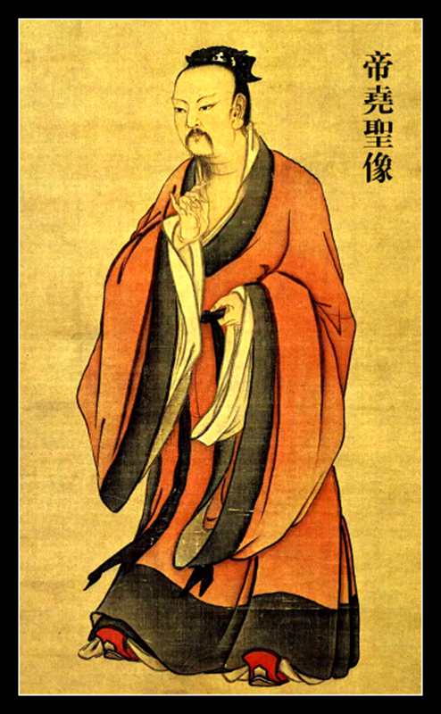 帝喾之子,黄帝之玄孙也,孔子删书断自唐尧,自尧帝甲辰元载起(上古编年未定,自尧帝甲辰起以下天运六甲周旋,历代至今一年不错),因兄帝挚尸位九年,天人厌弃,诸侯尊尧为天子,年十六践天子之位于平阳(今山西平阳府),国号曰唐(上古未有国号,自唐而始),以火德王,以建寅之月为岁首(寅为正月自唐始),命羲和作历象,以授民时(春夏秋冬详载于书),戊申五载,尧之庭有瑞草生焉曰蓂荚,十五日前日生一叶,十五日后日落一叶,月小则一叶不落,可以知旬朔故,又名历草。庚戌七载瑞应祥灵麒麟游于郊薮凤凰巢于阿阁,癸巳五十载,帝游观击壤有歌:日出而作,日入而息,凿井而饮,耕田而食,帝力何有于我哉华封有祝(华在陕西西安府华阴县掌封疆之官),愿圣人多富多寿多男子,至癸丑七十载虞舜登庸,举十六族才子八恺八元有五臣为辅,乙卯舜使禹平治水土,丙辰朔旦舜受终于文祖,尧命舜天之历数在尔躬允执其中,庚申作大章之乐(尧乐),辛酉七十八载神龟负文出于洛,癸亥八十载禹治水成功,定九州岛贡赋,大哉,尧之为君也,其仁如天,其智若神,荡荡乎,民无能名焉,癸未壹百载帝崩于阳城(即今河南府登封县),至乙酉丧毕寿壹百一十八岁而终,禅让虞舜登位。