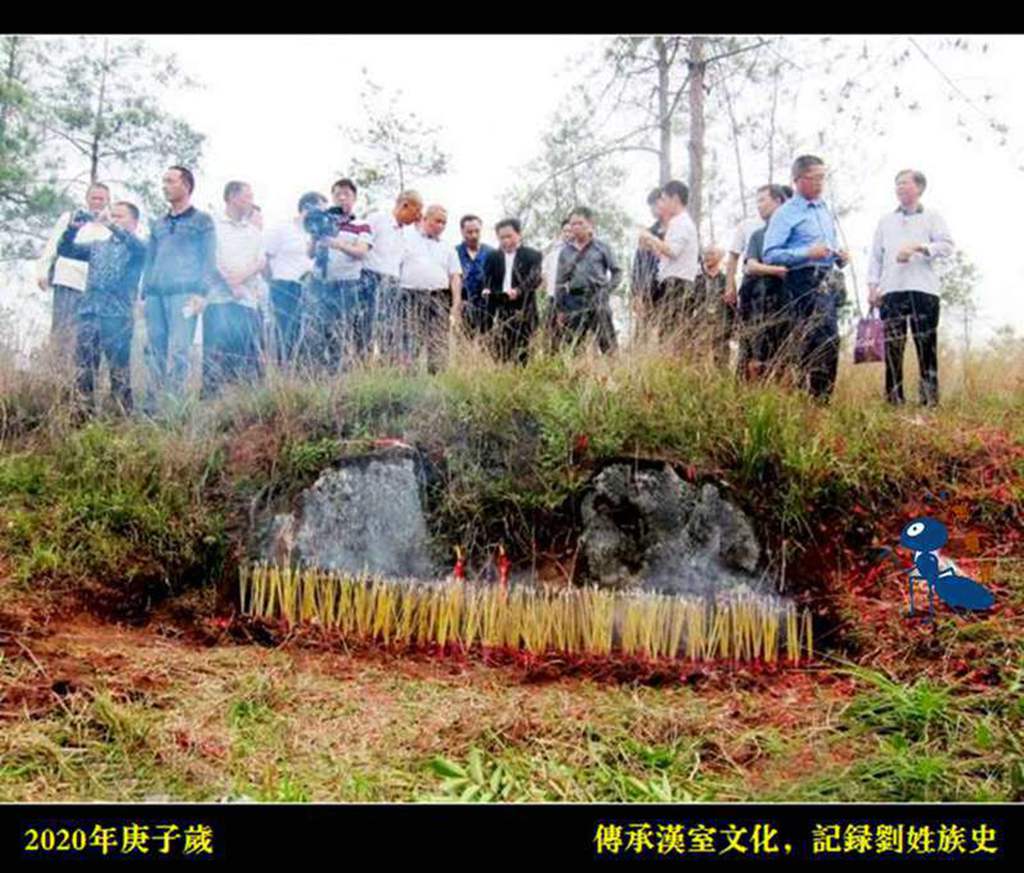据先祖流传,在距韶关南雄珠玑古巷约二公里有座五百多年历史的刘氏祖坟地,名叫赤石岭,该墓地用石与沙椿成墙,石碑已经破坏,无法找到,但周边有写刘氏佳城四个大字界碑,经各地后裔现场确认:此即系三世祖巨海公坟墓。经风水师实地堪测,此福地为美女照镜形,来龙旺盛,左右砂水环抱有情,明堂朝拜之案三台拱照,天然之湖水作镜,此乃天赐名坟。