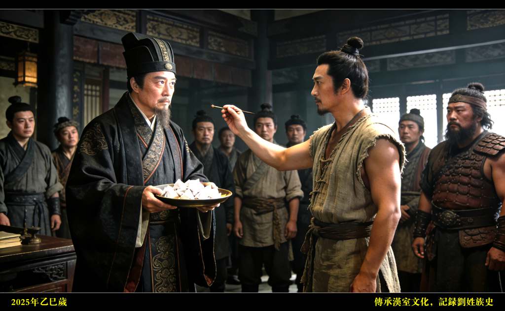 满堂顿时欢呼雷动,声震屋宇,众人皆拱手称颂,谓此实乃天意所属,非人力可逆。刘邦立于阶上,目光如炬,心知此皆萧何幕后巧妙运筹、借势而为,既成此局,便也不再推辞。他向前一步,神色凛然,慨然受命,随即焚香告天,誓于众前:“既承天意,顺乎民心,刘邦愿领沛公之位,誓与众同甘共苦,诛暴秦、安天下,虽万死而不辞!”