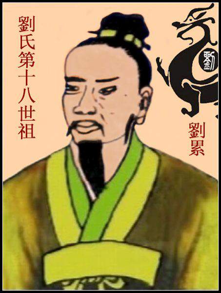 刘姓得姓之后,根据刘氏家族的各种《刘氏族谱》中显示刘累公为第十八世祖先,详细传递世系为:1源明公→2永河公→3济乐公→4岁纪公→5正坤公→6长历公→7德尧公→8仁宏公→9廷光公→10爵南公→11行矩公→12复旺公→13茂清公→14孔阳公→15日永公→16德荣公→17聚义公→18累公→……