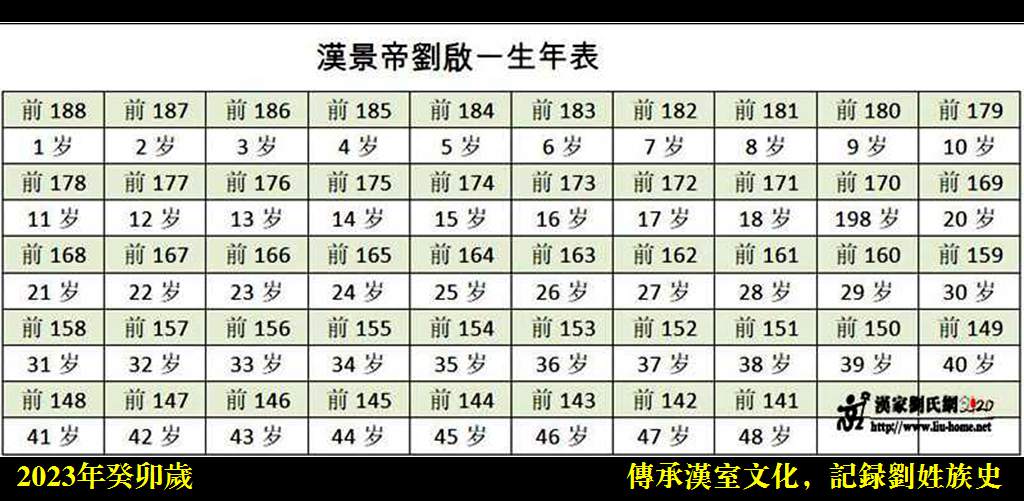 《史记.外戚世家第十九》载:“(窦姬)至代,代王独幸窦姬,生女嫖,后生两男。”故在公元前189年生长女劉嫖,次年的漢惠帝七年癸丑岁(公元前188年)腊月初五日,长子劉启诞生,是年代王劉恒十五岁,母亲窦氏十八岁。
