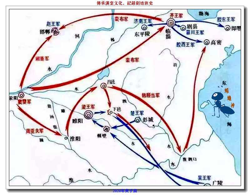 吴楚七国联军势如破竹,声势也大,吴、楚共攻梁国,弟弟梁王劉武倾全国之兵守睢阳,帮助漢中央政府死死的抵挡住吴楚联军的进攻,让吴楚主力军队不敢茫然越过梁国向西进兵,而这也让漢中央政府有了足够的时间去调配兵力和粮草,见梁国死死拖住吴楚联军,周亚夫率兵南下,趁机夺取了泗水入淮之口,从而断绝了吴楚联军的粮道,而这也就奠定了漢中央政府日后的胜利。