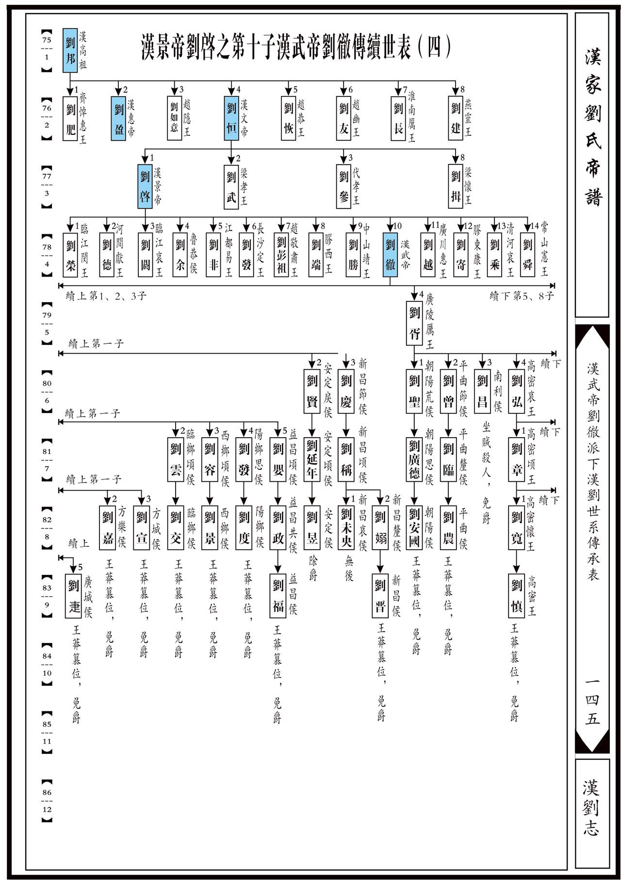 汉武帝刘彻传下后裔族谱详细资料: