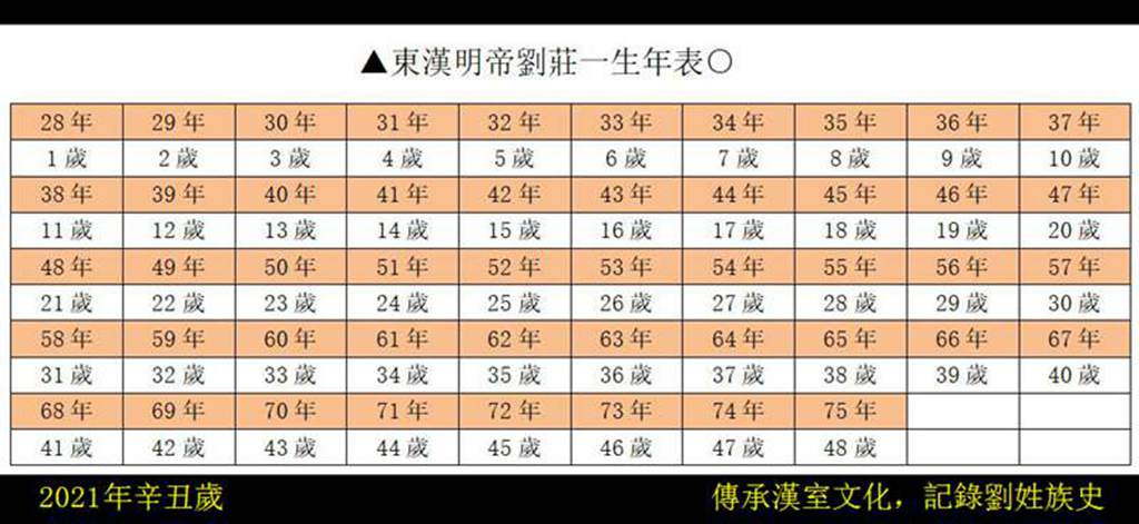 据《汉刘帝谱世系表》记:75汉高祖刘邦→76孝文皇帝刘恒→77孝景皇帝刘启→78长沙定王刘发→79舂陵节侯刘买→80郁林太守刘外→81巨鹿都尉刘回→82南顿县令刘钦→83东汉光武帝刘秀(配光烈皇后阴丽华)→84东汉明帝刘庄→
