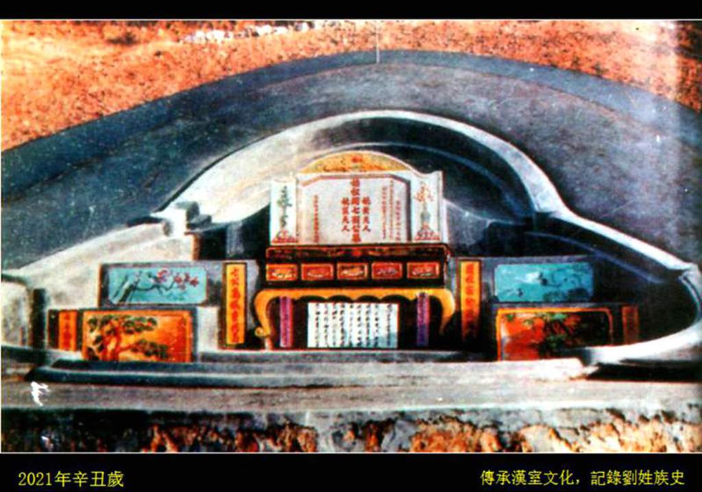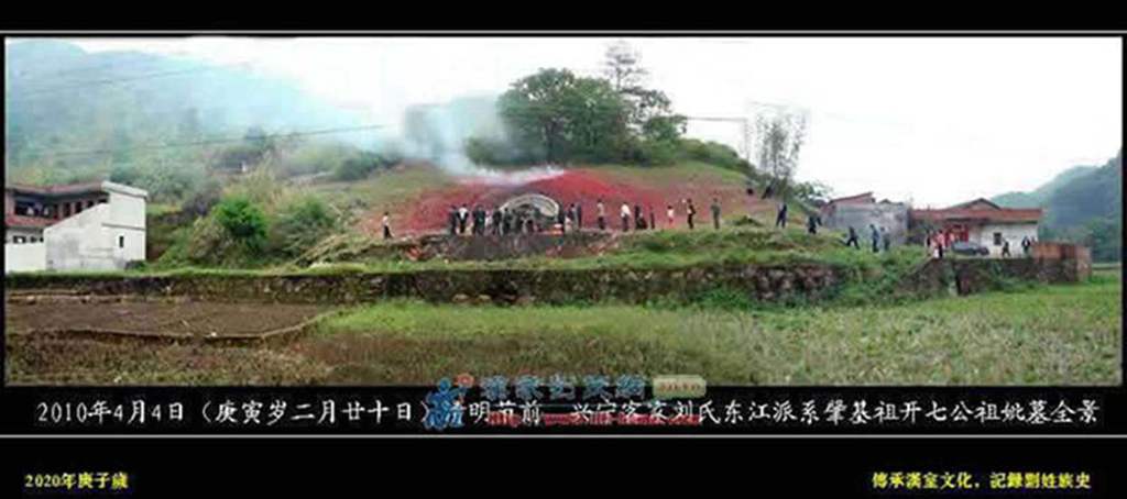 清朝康熙三十九年庚辰岁(1700年)十一月二十三日子时,重修墓地一次,并在岗背榕树下村(距祖坟五里许地方)将本宗私屋.由广东、广西、江西、福建四省宗亲,联合捐资改建为刘氏总祠一座(寅山申向、为金蟹游江形),定期每年农历正月十九夜祭祠,二十曰扫墓,永为定祀。