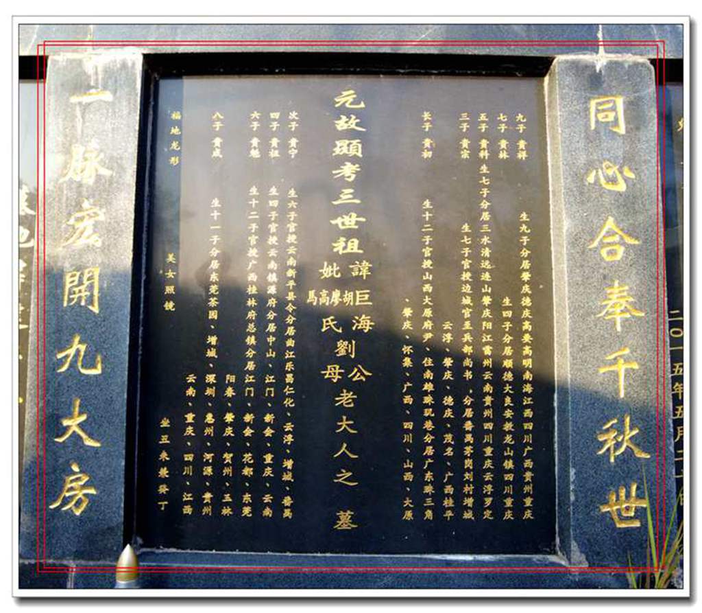 祖系广传公之第五子也,马氏生也,讳良,字子华。妣李氏、胡氏、罗氏、简氏、高氏、巫氏、方氏,生九子:1贵初、2贵宁、3贵宗、4贵祖、5贵科、6贵魁、7贵林、8贵诚、9贵祥。
