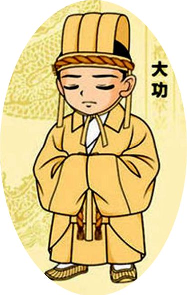 大功,亦称“大红”,是次于“齐榱”的丧服。用粗熟麻布制做,质料比"齐榱"用料稍细。服期为九个月。