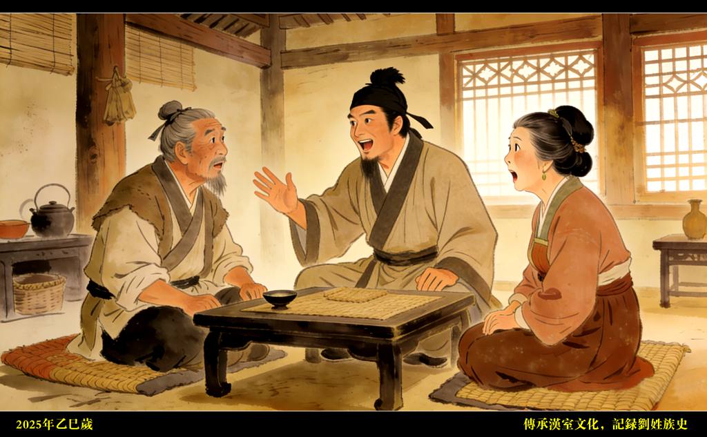 院坝里,刘太公望着儿子几乎要飘起来的背影,又看了看身旁正弯腰捡起麻布巾、抹着围裙笑的老伴,轻轻叹了口气,语气里却藏着几分掩饰不住的欣慰:“这小子,总算有件正经事上心了,也算是真的长大了。”刘媪直起身子,擦了擦手,望着暮色里儿子远去的方向,笑着点了点头:“可不是嘛,能定下心来娶媳妇,就是好事。”夕阳的余晖将两人的身影拉得长长的,交织在一起,仿佛也在为这个家庭的未来默默祝福。