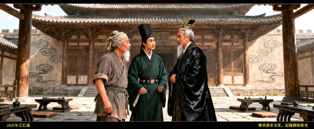 次日一早,天刚蒙蒙亮,刘太公就让曹娴都找出那身逢年过节才穿的粗绸长衫,熨烫得笔挺,自己又仔细梳了头,戴上那顶旧竹编帽。他让刘季拎上两坛埋在院中西角老槐树下的陈年粟酒——那是当年刘季从咸阳带回来的,一直舍不得喝,今日特意挖出来当见面礼。爷俩一前一后,往吕公在沛县的新府舍走去。刚到朱漆大门的府门口,就见几个穿绫罗绸缎的乡绅正排队求见,手里都拎着精致的礼盒。门房见刘太公父子衣着寻常,手里就两坛酒,脸上露出轻视,伸手就要拦。刘季刚撸起袖子要发作,就听府内传来一声洪亮的嗓音:“是刘季贤侄来了吧?快请进来!”