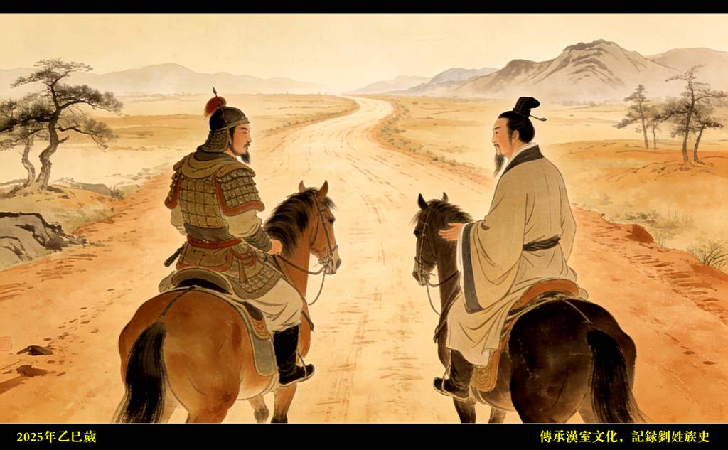 两队人马猝然相遇于官道转弯处,皆下意识地勒马止步,动作整齐划一。马蹄踏起未落的尘埃,在斜射的阳光中浮动如金粉,氤氲出一片朦胧。风忽然静了,只闻旗角扑啦啦的响动,和几声战马不安的鼻息,空气中弥漫着剑拔弩张的气息。刘邦眯起眼睛,眼神锐利如鹰,仔细打量对方为首者,见其白衣飘飘,虽无甲胄在身,却自有一股凛然风骨,眉宇间藏着三分书卷气、七分锋芒,举手投足间透着世家大族的儒雅与决绝,绝非寻常草莽英雄,心中暗自提防:此人气质不凡,来路不明,莫不是秦军的细作?或是其他义军的探子? 他抬手示意部下稍安勿躁,朗声道:“前方可是景驹假王麾下?在下沛公刘邦,自沛邑而来,往留地投效,敢问阁下高姓大名?”